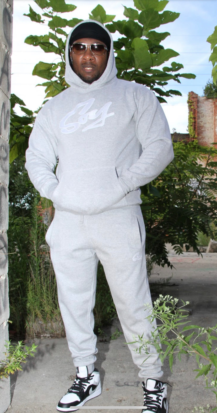 Get Your Hustle On in Style with our Classic Gray and White Hoodie & Jogger Set!
