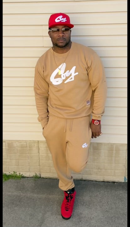 upgrade your wardrobe with this light pink and white. Classic sweater and joggers set. Stylish enough for everyday wear.(hat not included)
